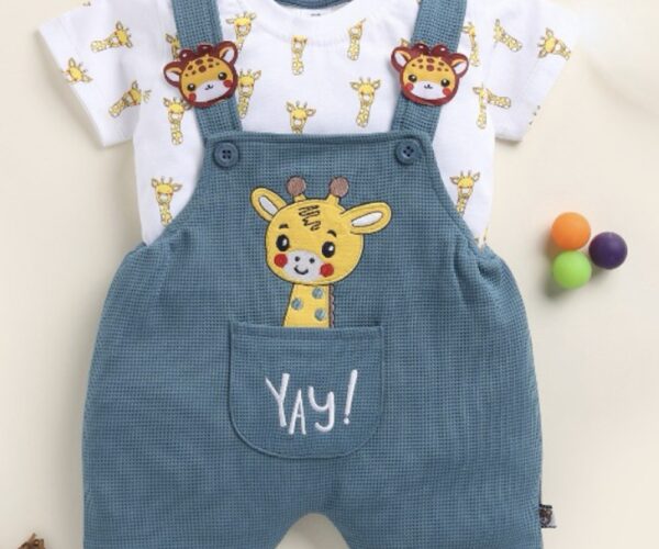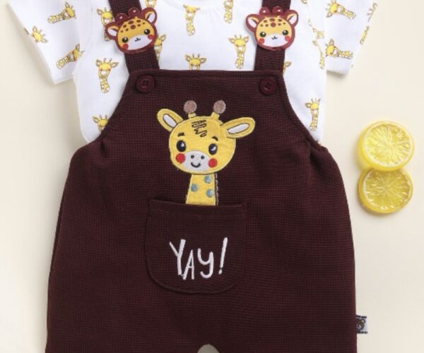 Giraffe gleam dungarees (Brown/maroon) 2pcs