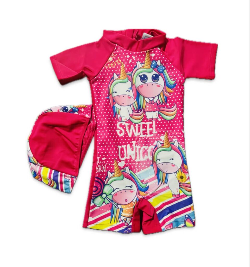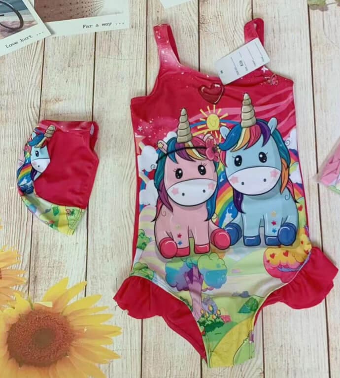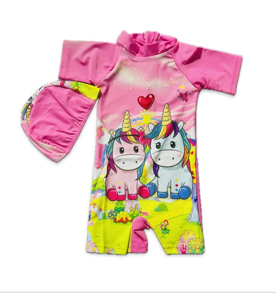 Pink Unicorn printed Girls swim...