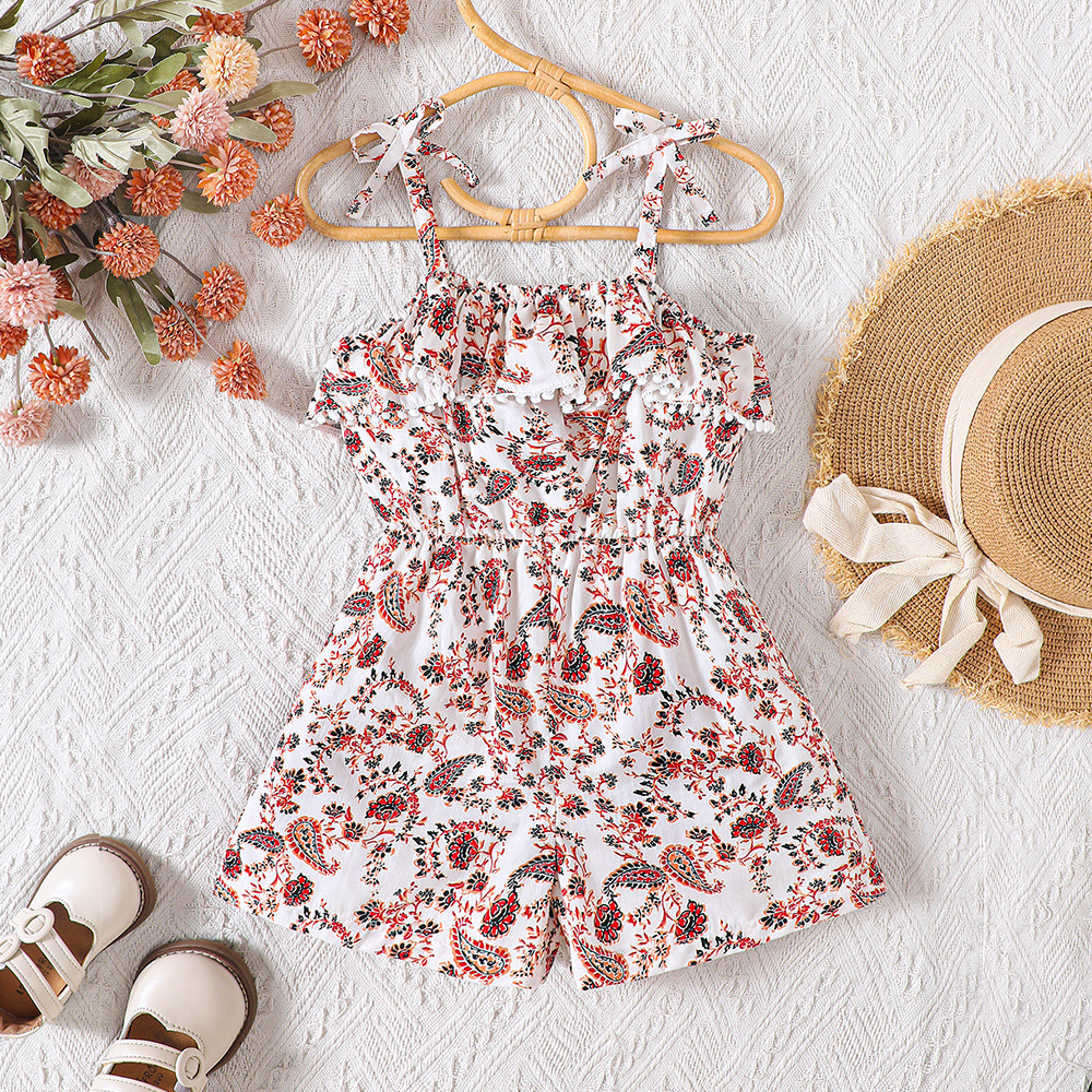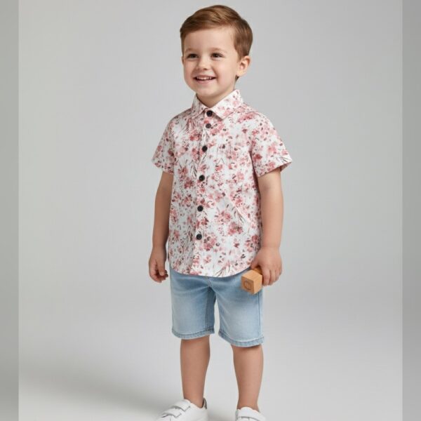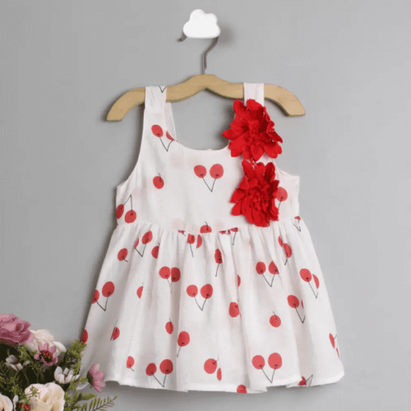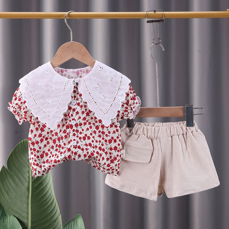 Girls Red Floral Print Short-Sleeve...