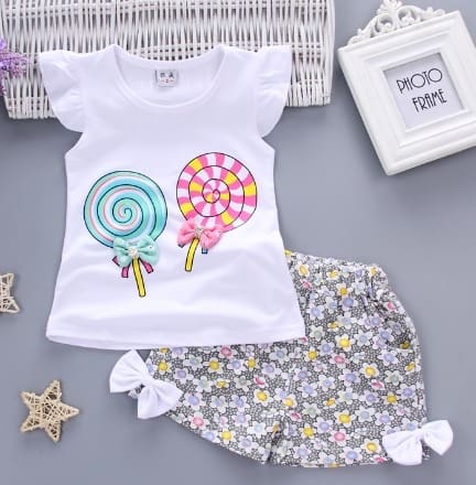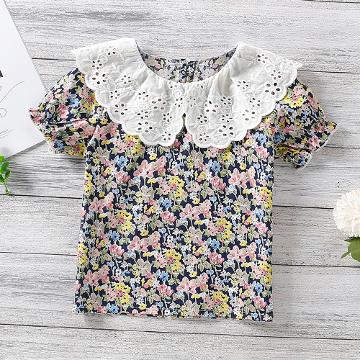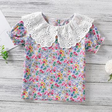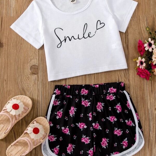 Girls White Floral Print Short-Sleeve...