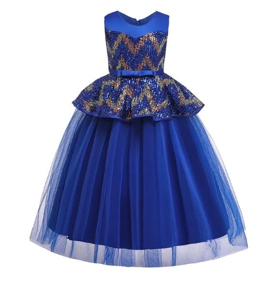 Girls Blue Sleeveless Solid Gown