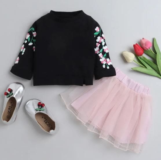 Girls Navy Floral Print Full-Sleeve...