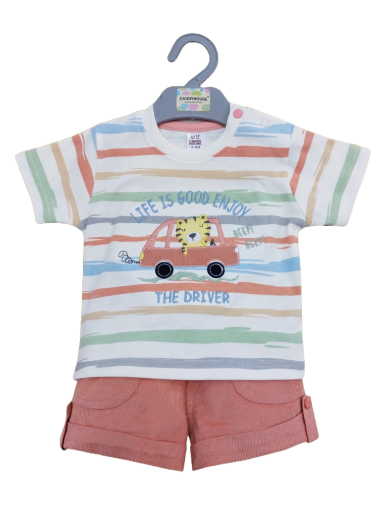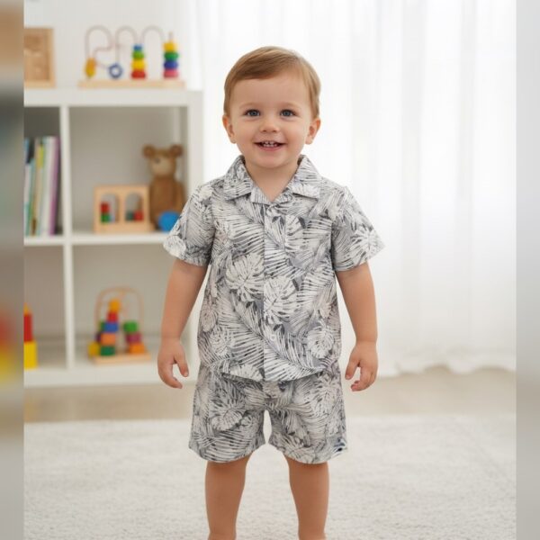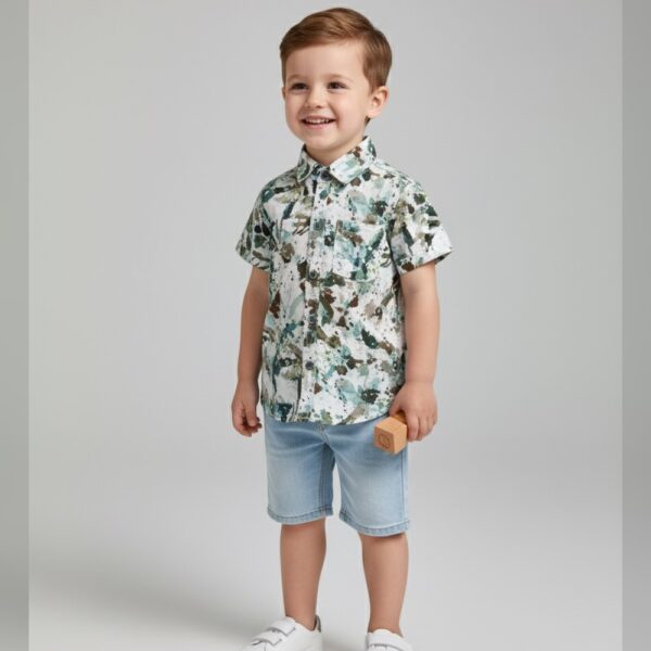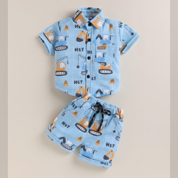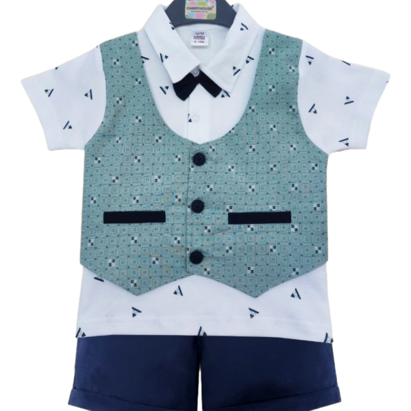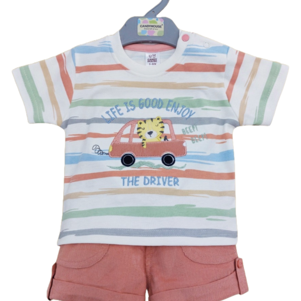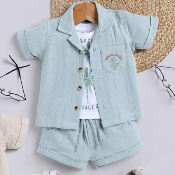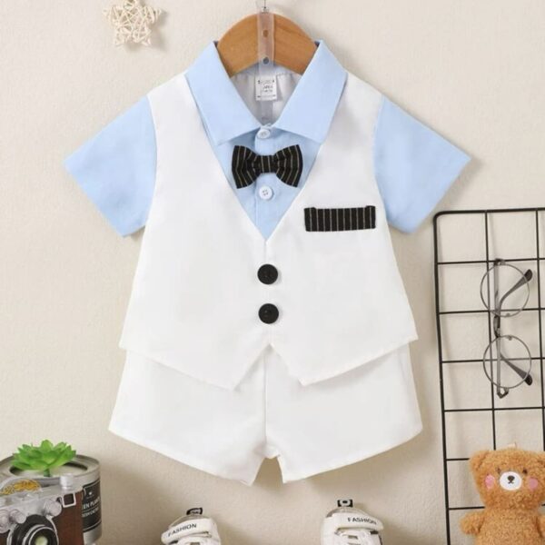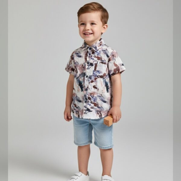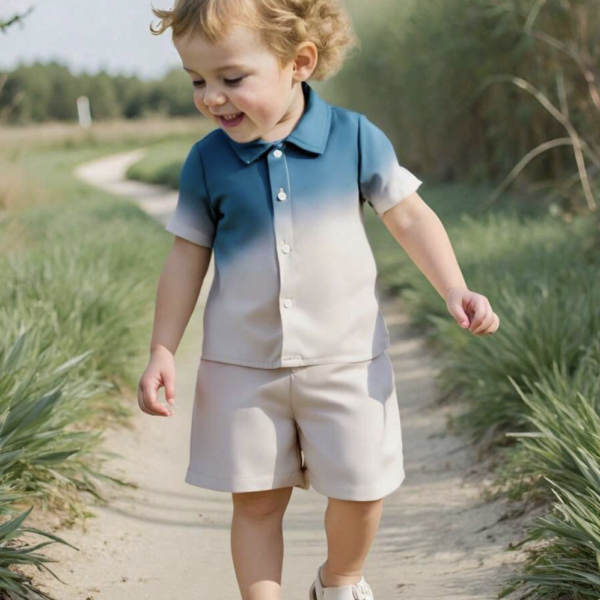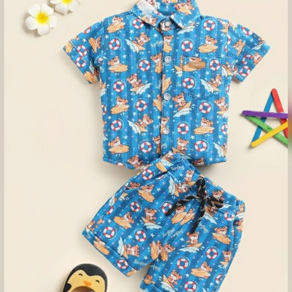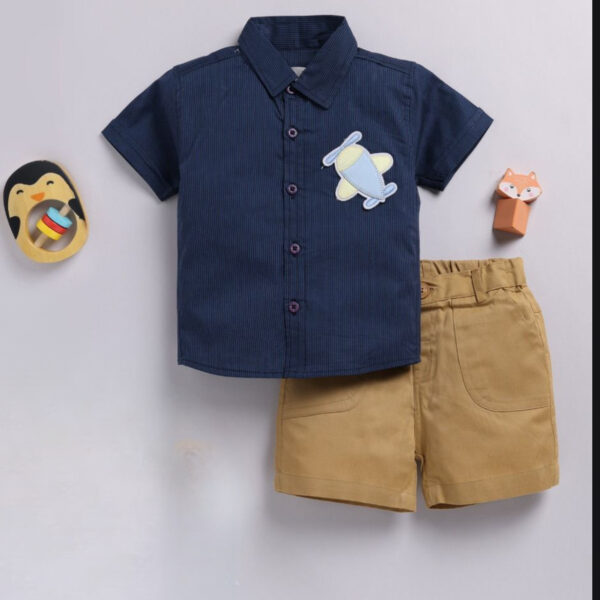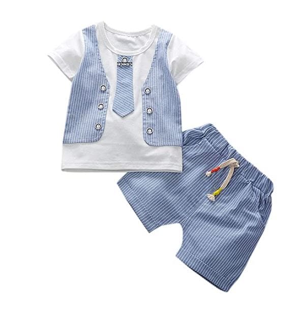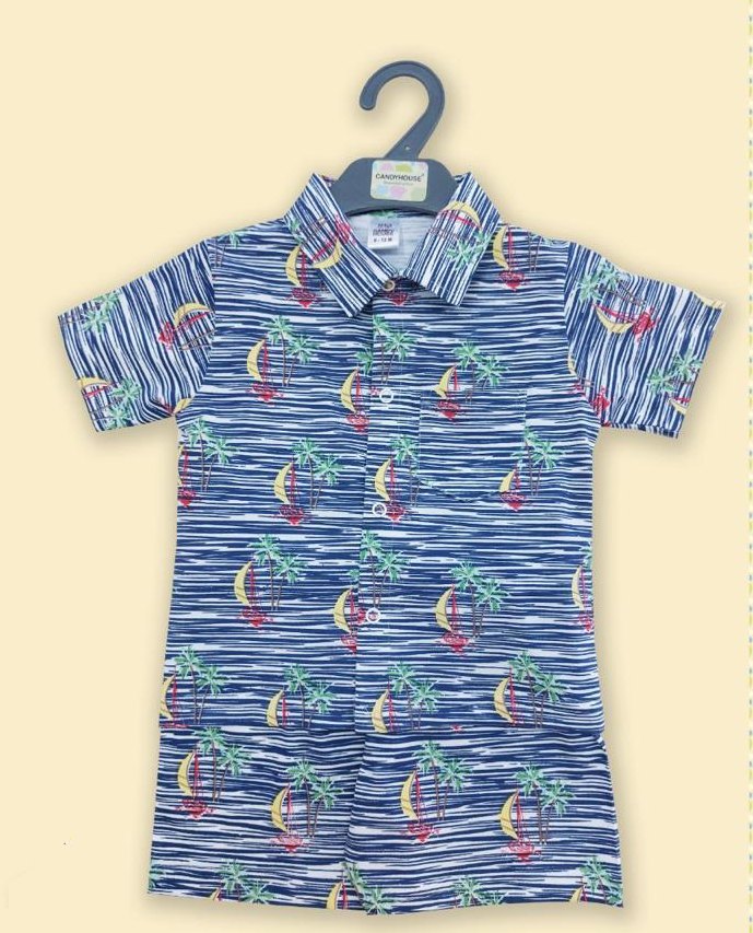 Boys Blue Stripes Print Short-Sleeve...