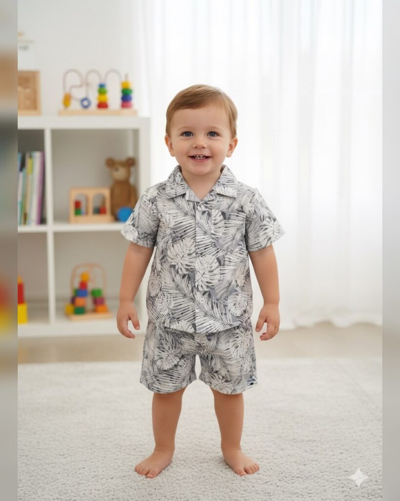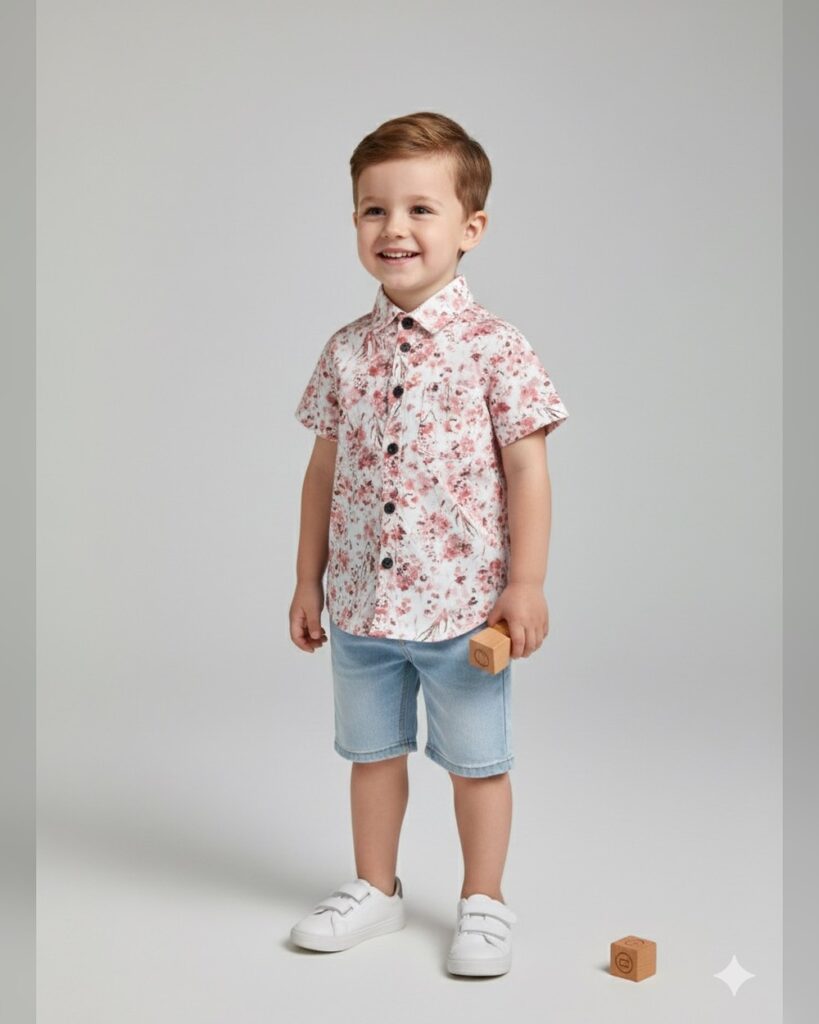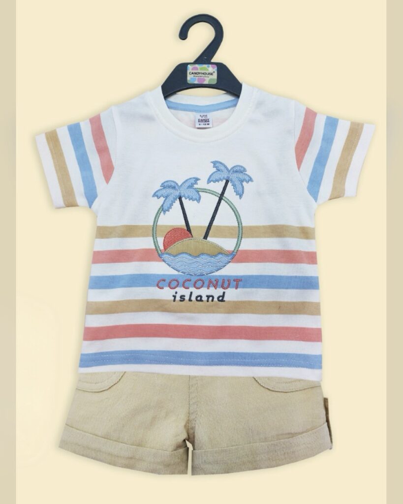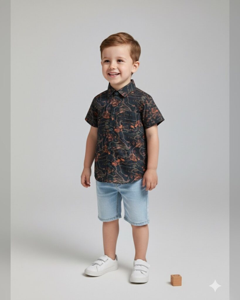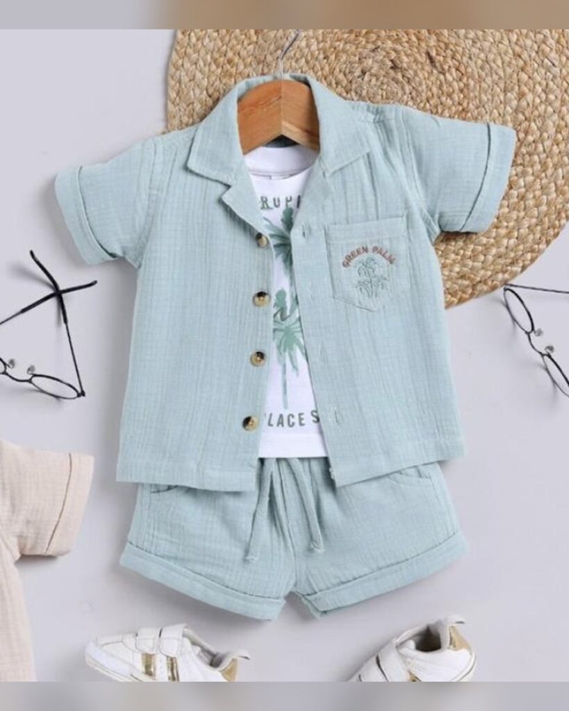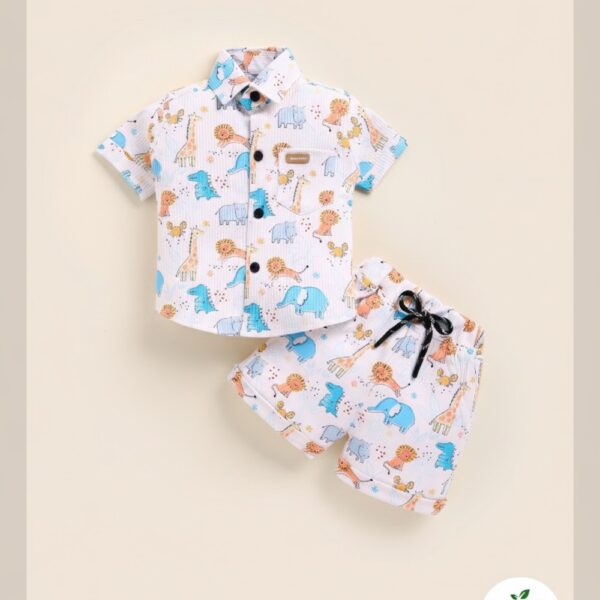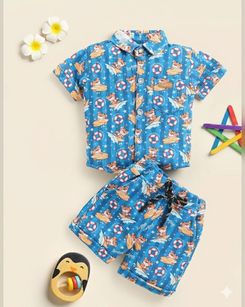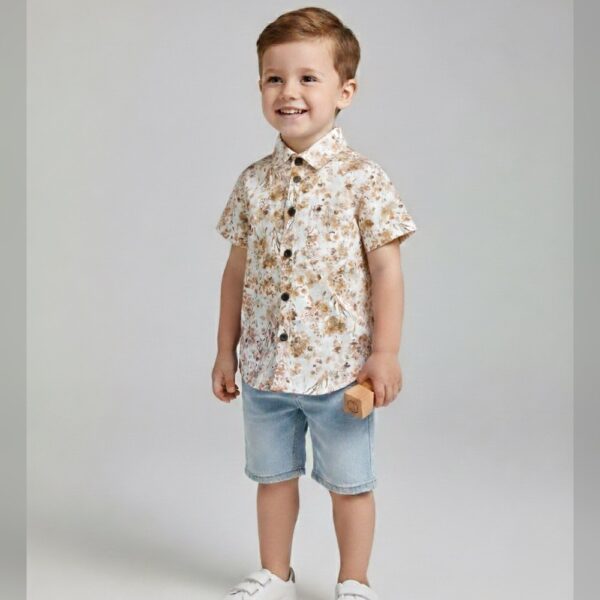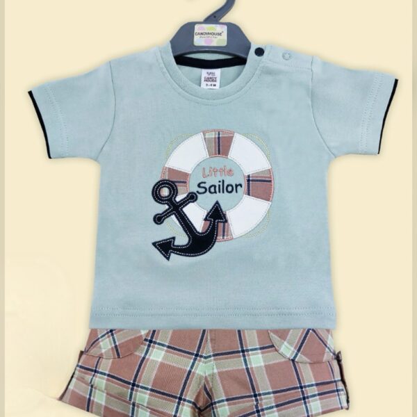 Boys Blue Stripes Print Short-Sleeve...
