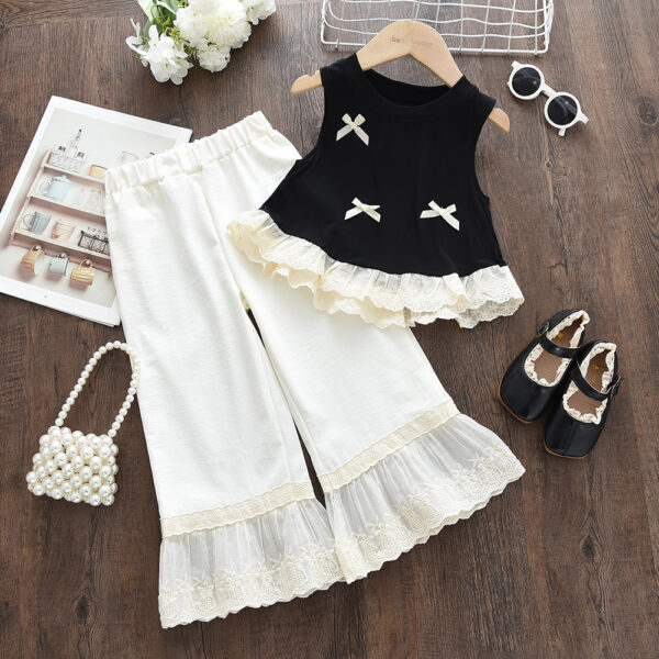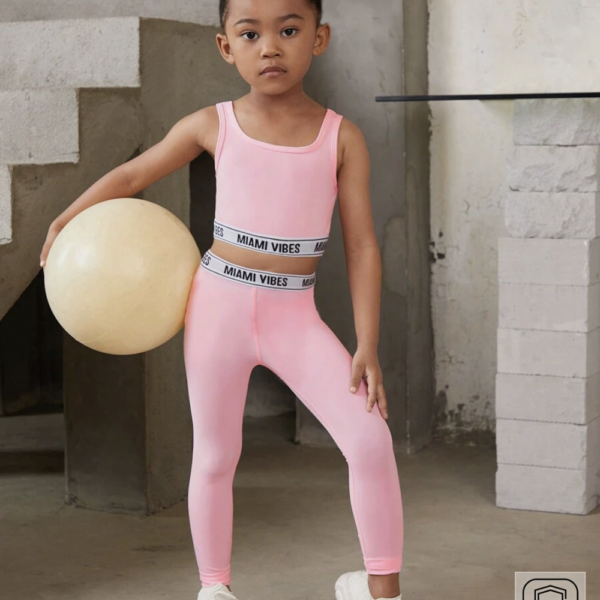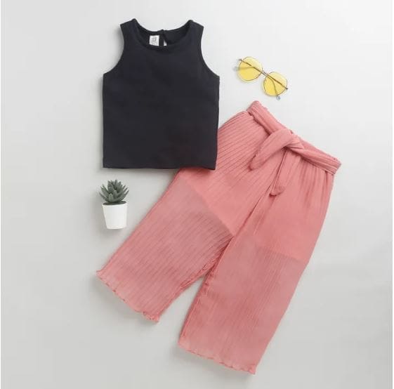 Girls Peach Solid Sleeveless Jogger...