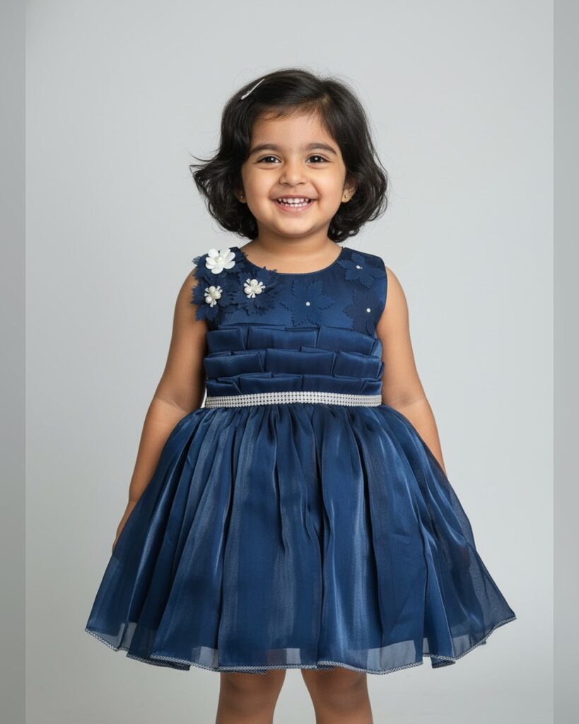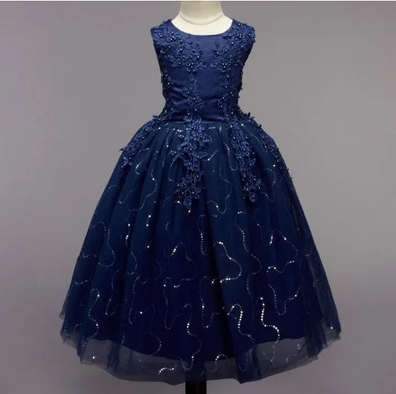 Girls Navy Sleeveless Solid Gown