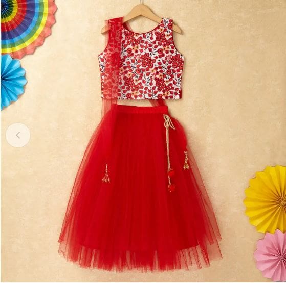 Girls Red Solid Sleeveless Pant...