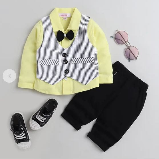 Boys Yellow Stripes Print Full-Sleeve...