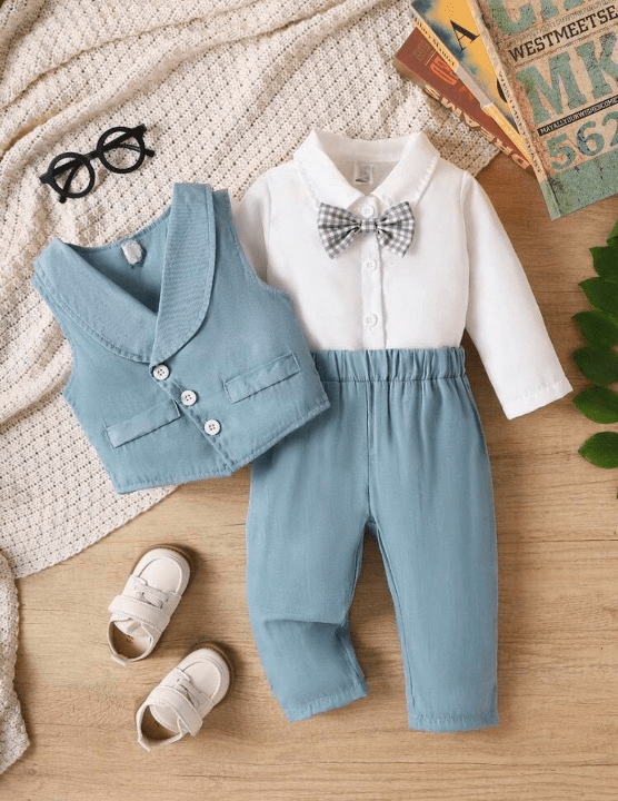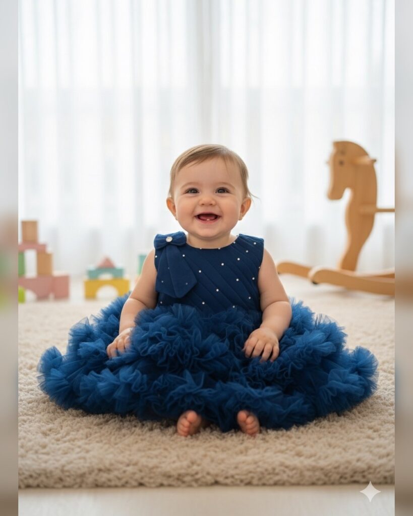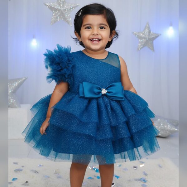 Blue Solid Applique Bow Party...