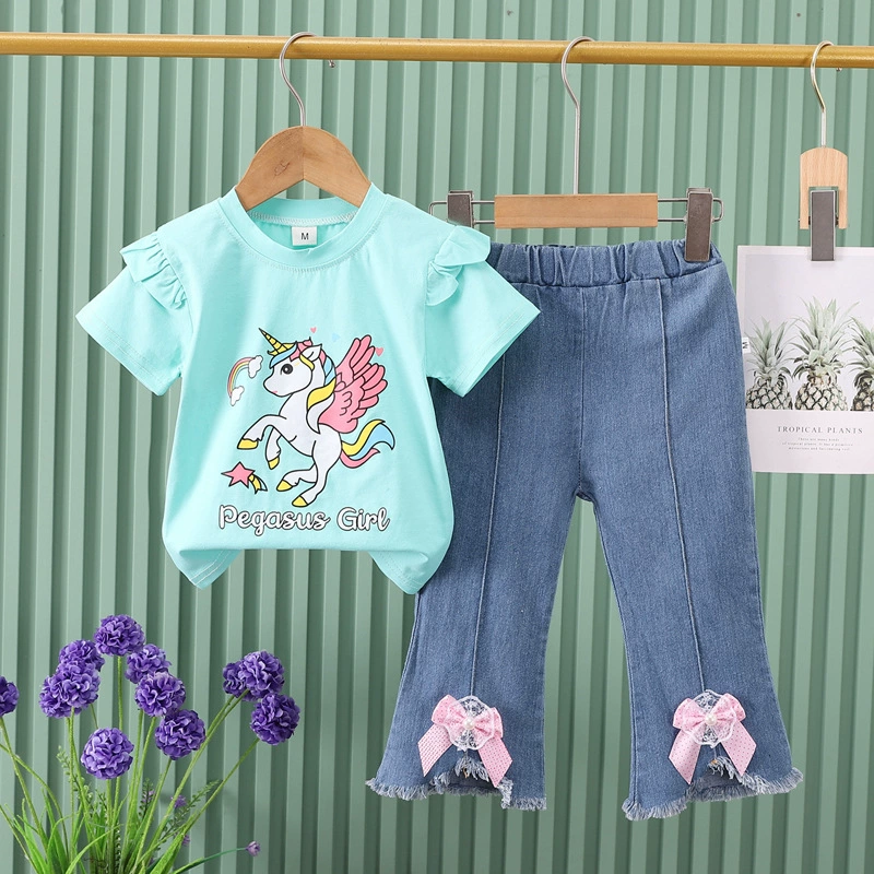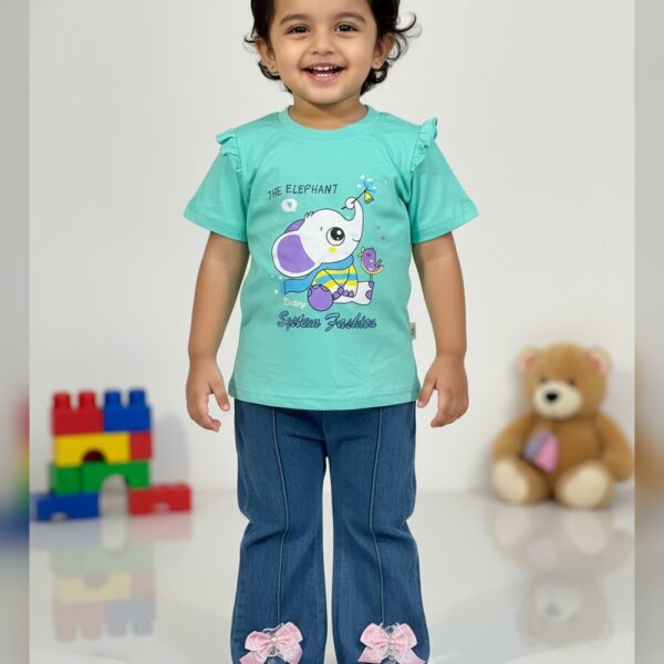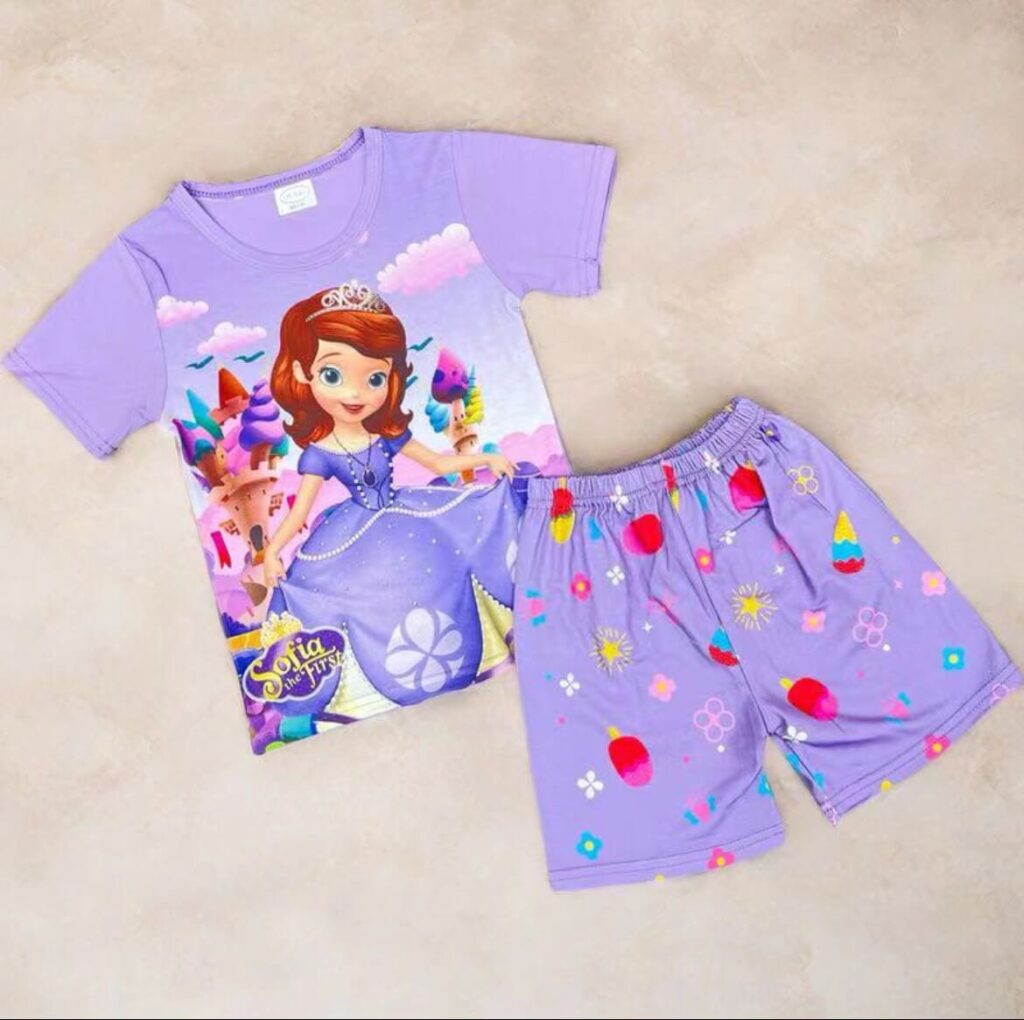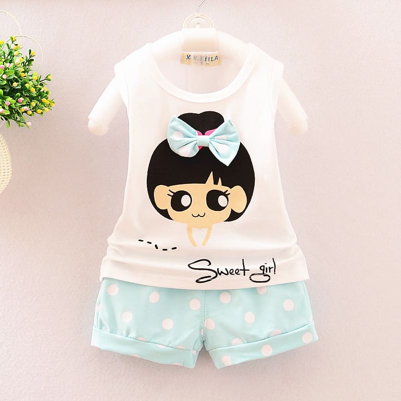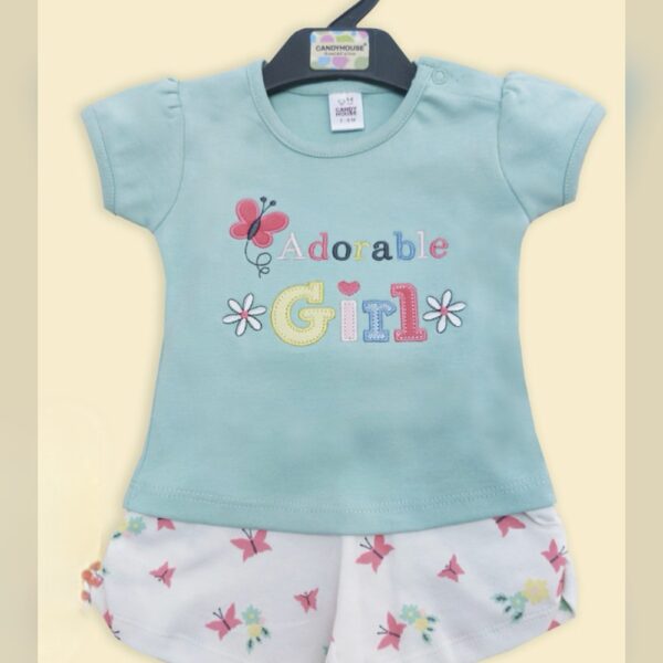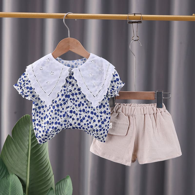 Girls Blue Solid Short-Sleeve Jogger...