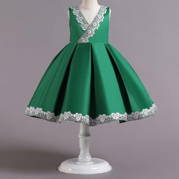 Green Sleeveless Applique Floral Solid...