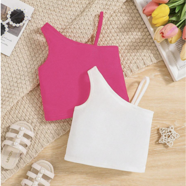 Girls White Solid Sleeveless Onesie