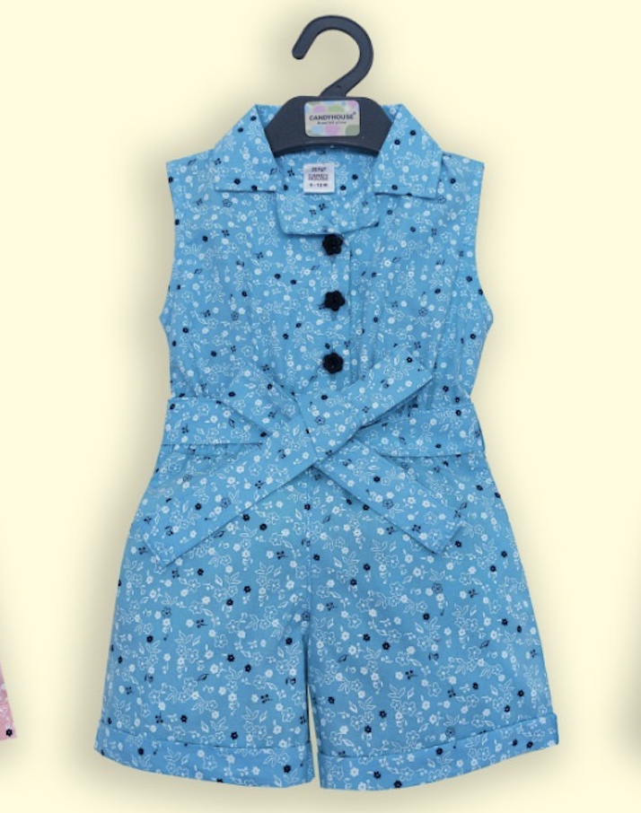 Girls Blue Floral Print Party...