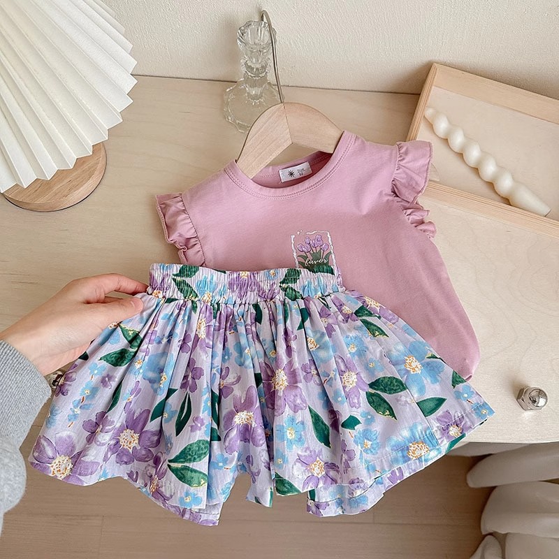 Girls Purple Sleeveless Floral Print...