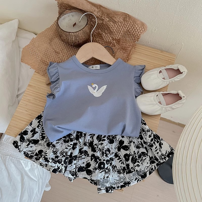 Girls Navy Sleeveless Floral Print...
