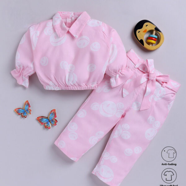 Girls Pink Short-Sleeve Solid Casual...