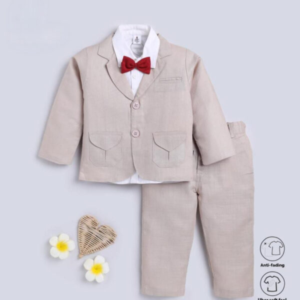 Boys Beige Solid Full-Sleeve Formal...
