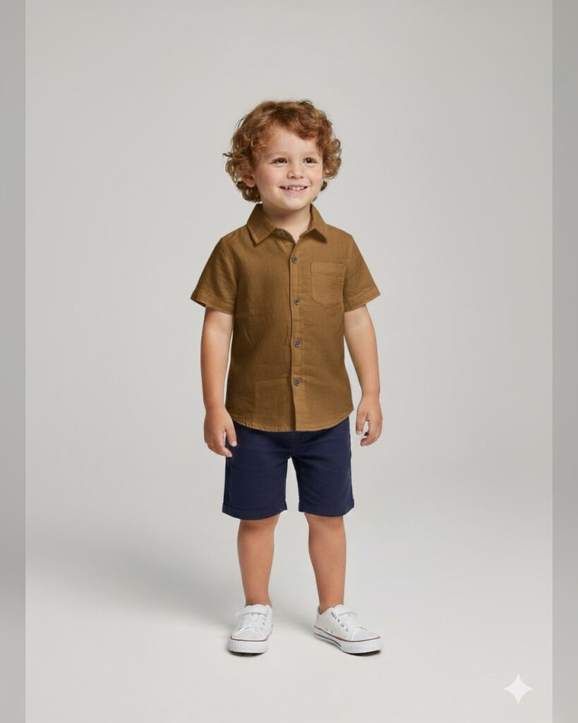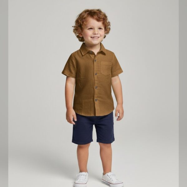 Girls Brown Short-Sleeve Solid Casual...