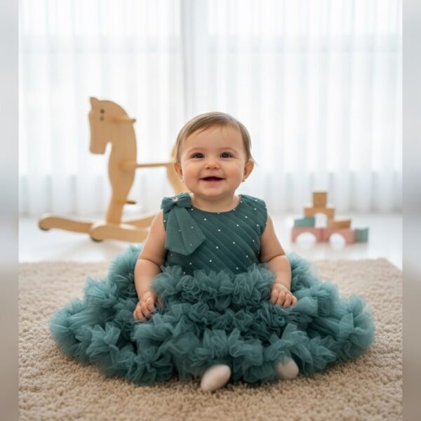 Girls Turquoise Sleeveless Embellished Party...