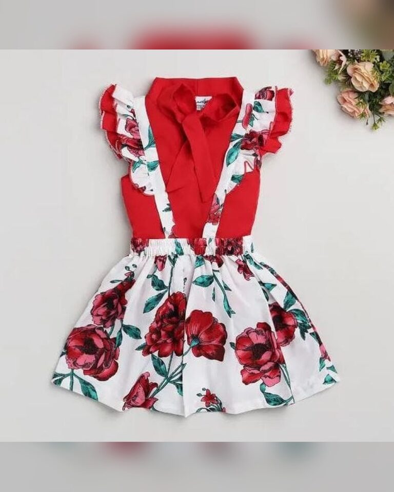 Girls Red Floral Print Short-Sleeve...