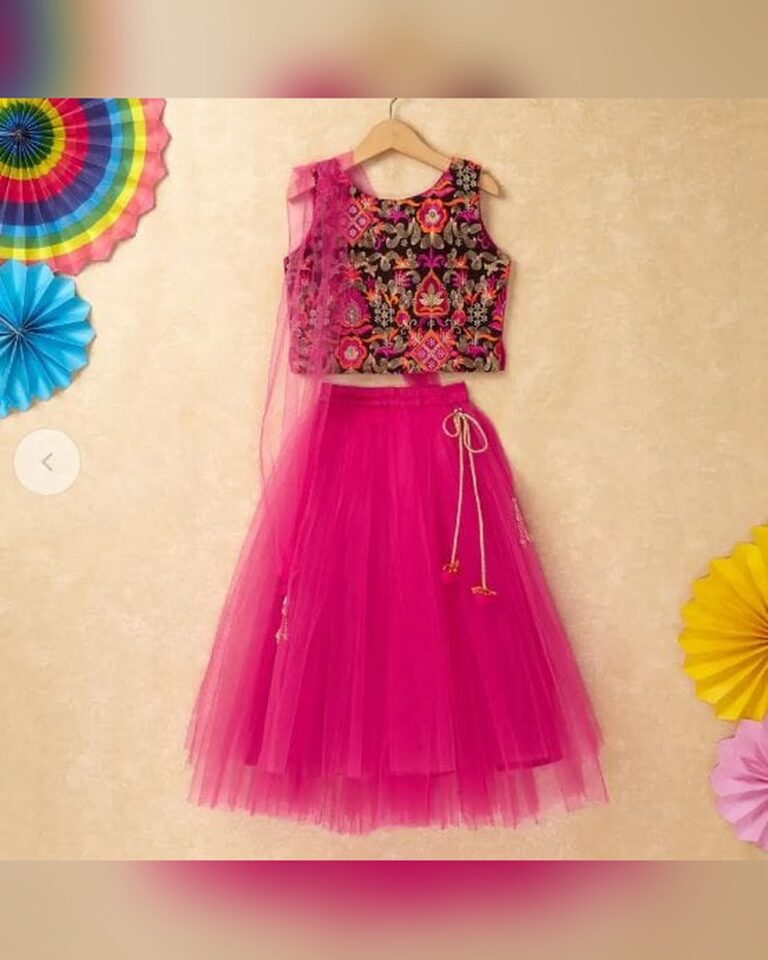 Girls Fuchsia Ethnic Print Lehenga...
