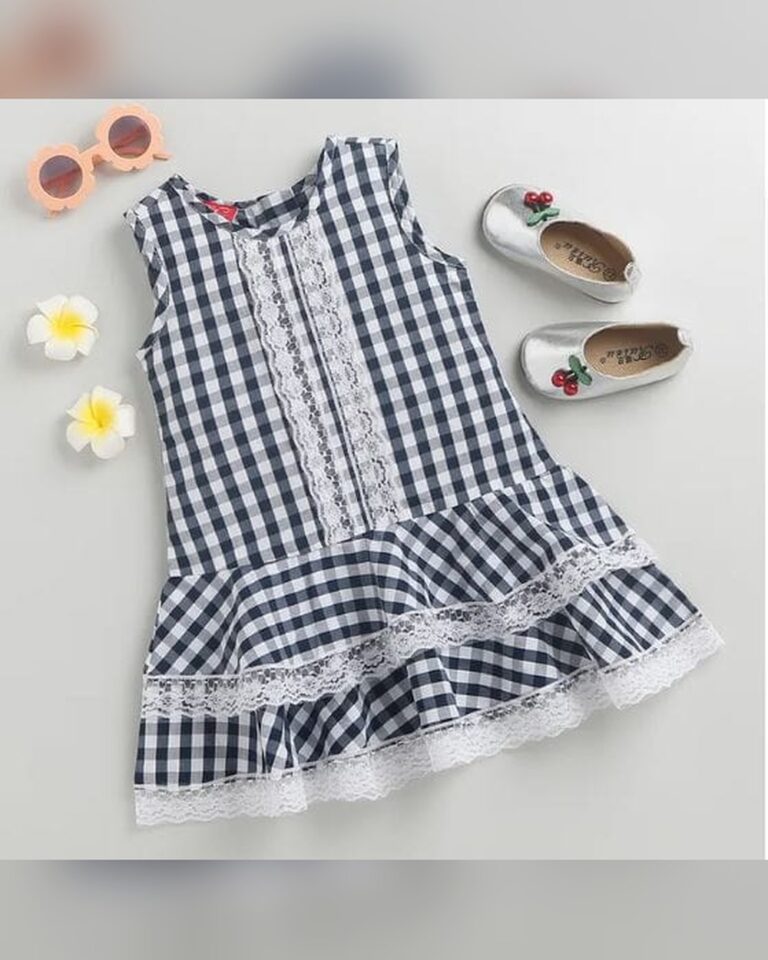 Girls Navy Sleeveless Checkered Casual...