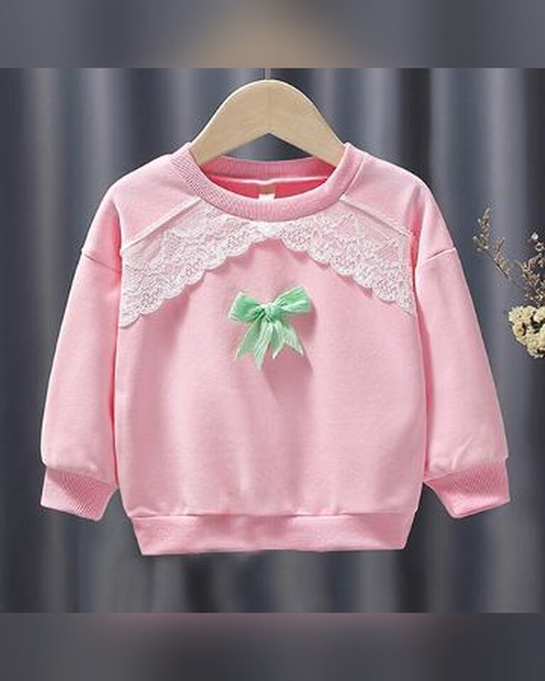 Girls Pink Embellished Full-Sleeve Sweatshirt