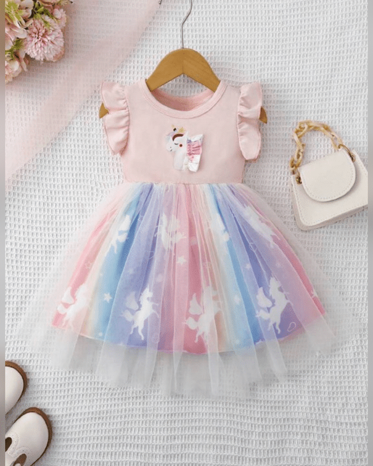 Baby Girl Unicorn Print Ruffle...