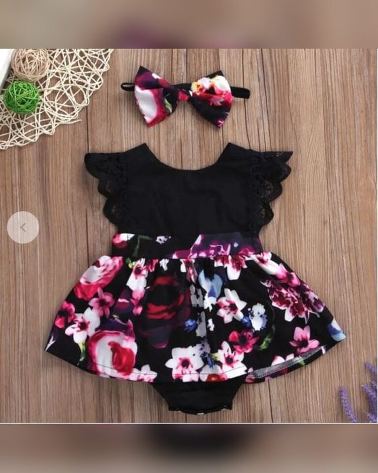Girls Black Floral Print Onesie...