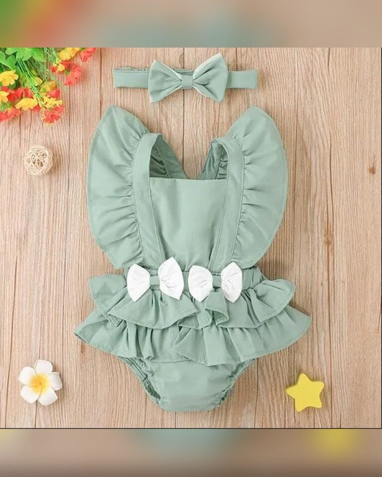 Girls Green Ruffled Onesie With...