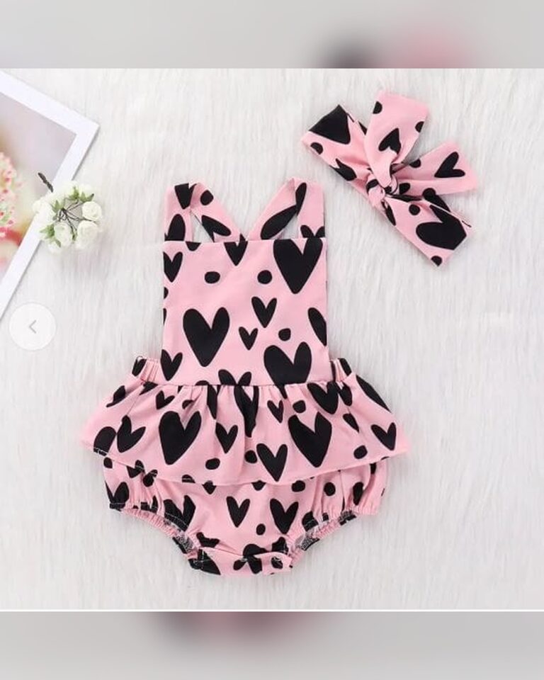 Girls Pink Heart Print Onesie...
