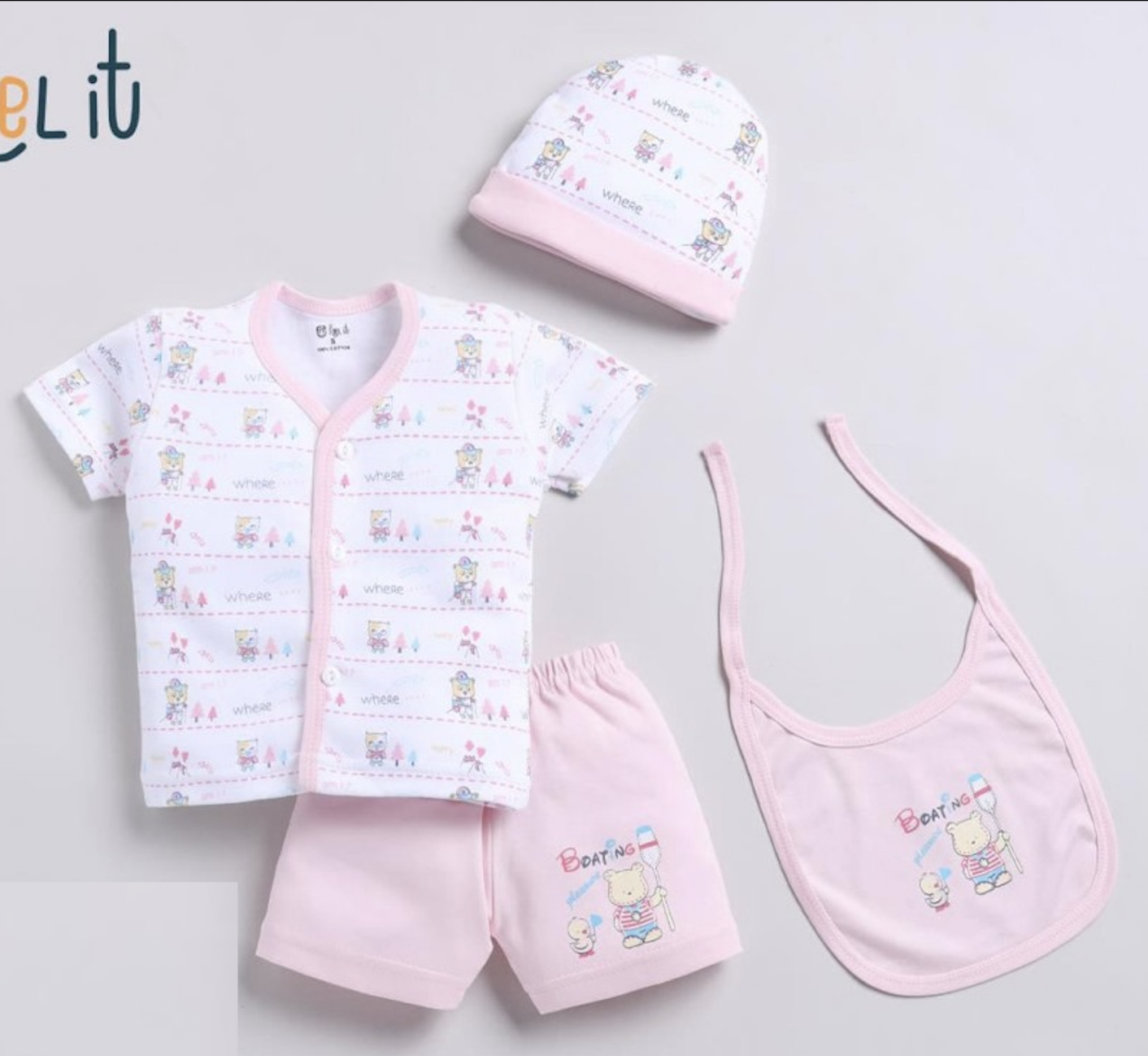 Baby boy and girl /borting fashion pink top and short with cap /4 pcs
