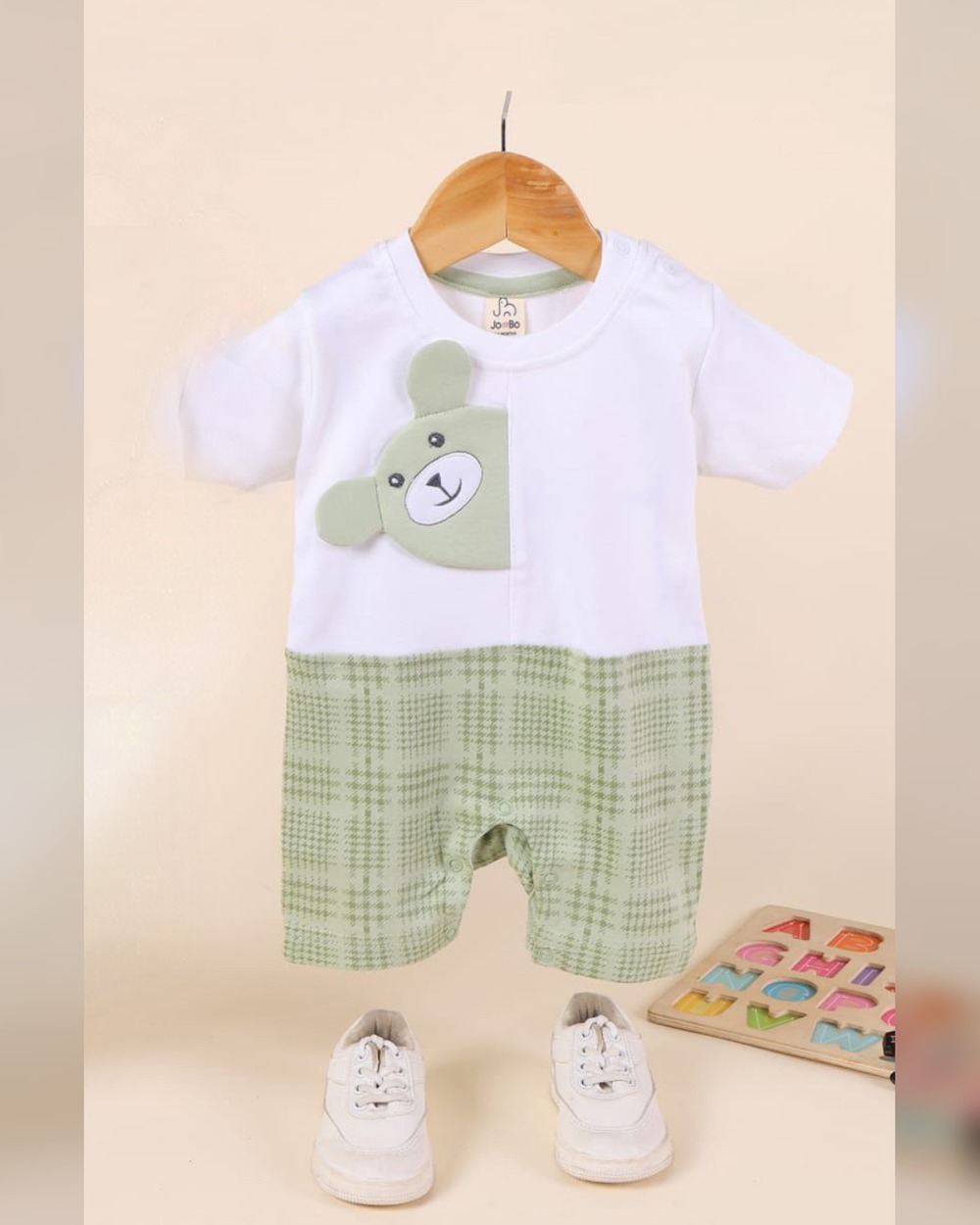 Baby boy & girl teddy plaid romper (Green)