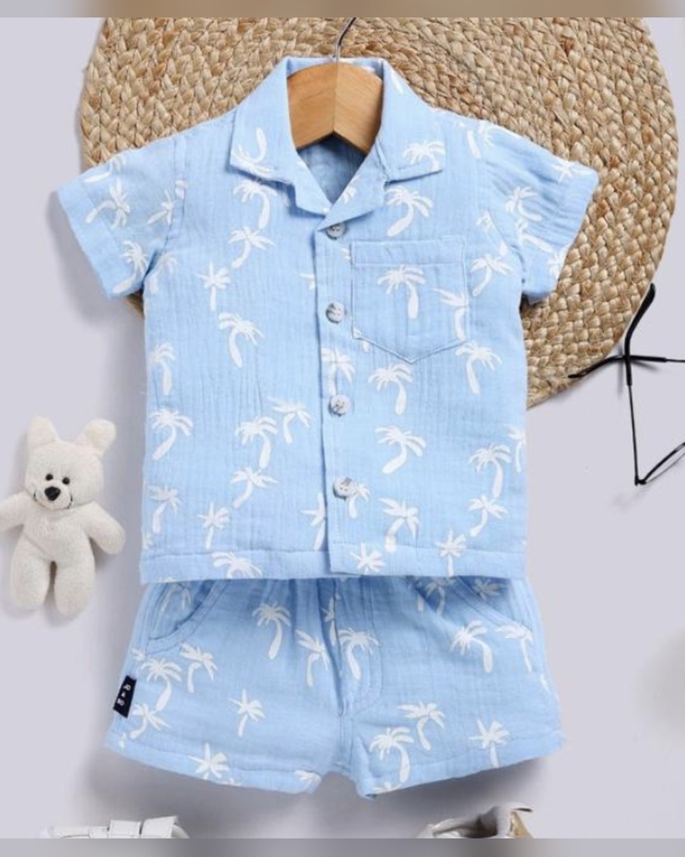 Baby boys / sunset palms baby ensemble set shirt with short /2pcs (Blue)
