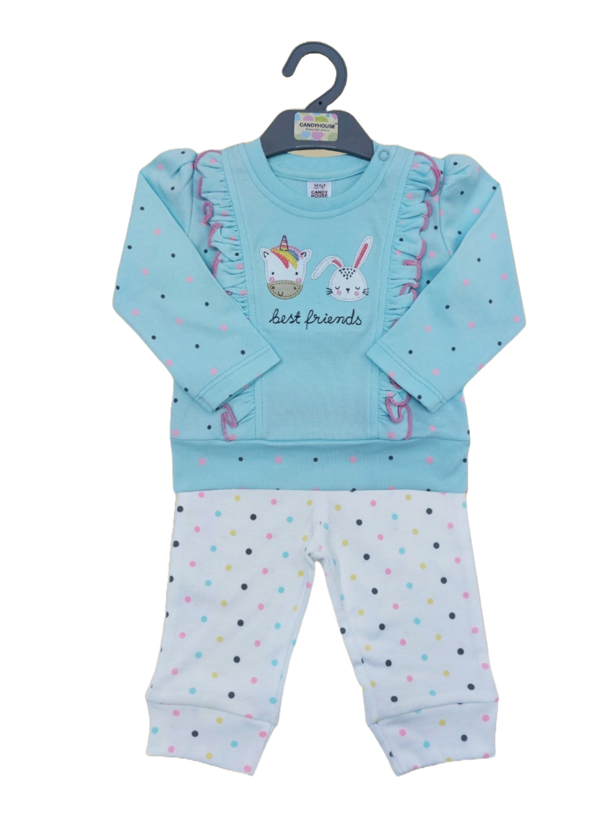 Baby girl / Green long sleeves and pants featuring a print of small animal and the word loved embroidered on the t-shirt (2pcs)