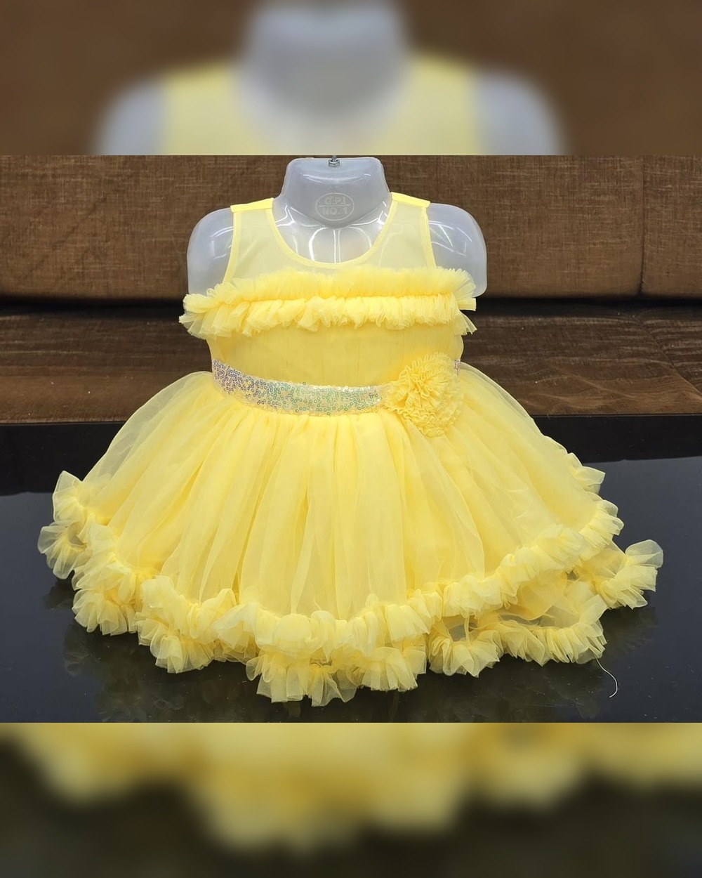 baby girl new fashion party frocks /birthday wear(yellow colour)