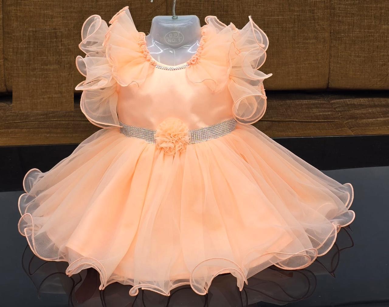 Baby girl party frock(net) light orange colour