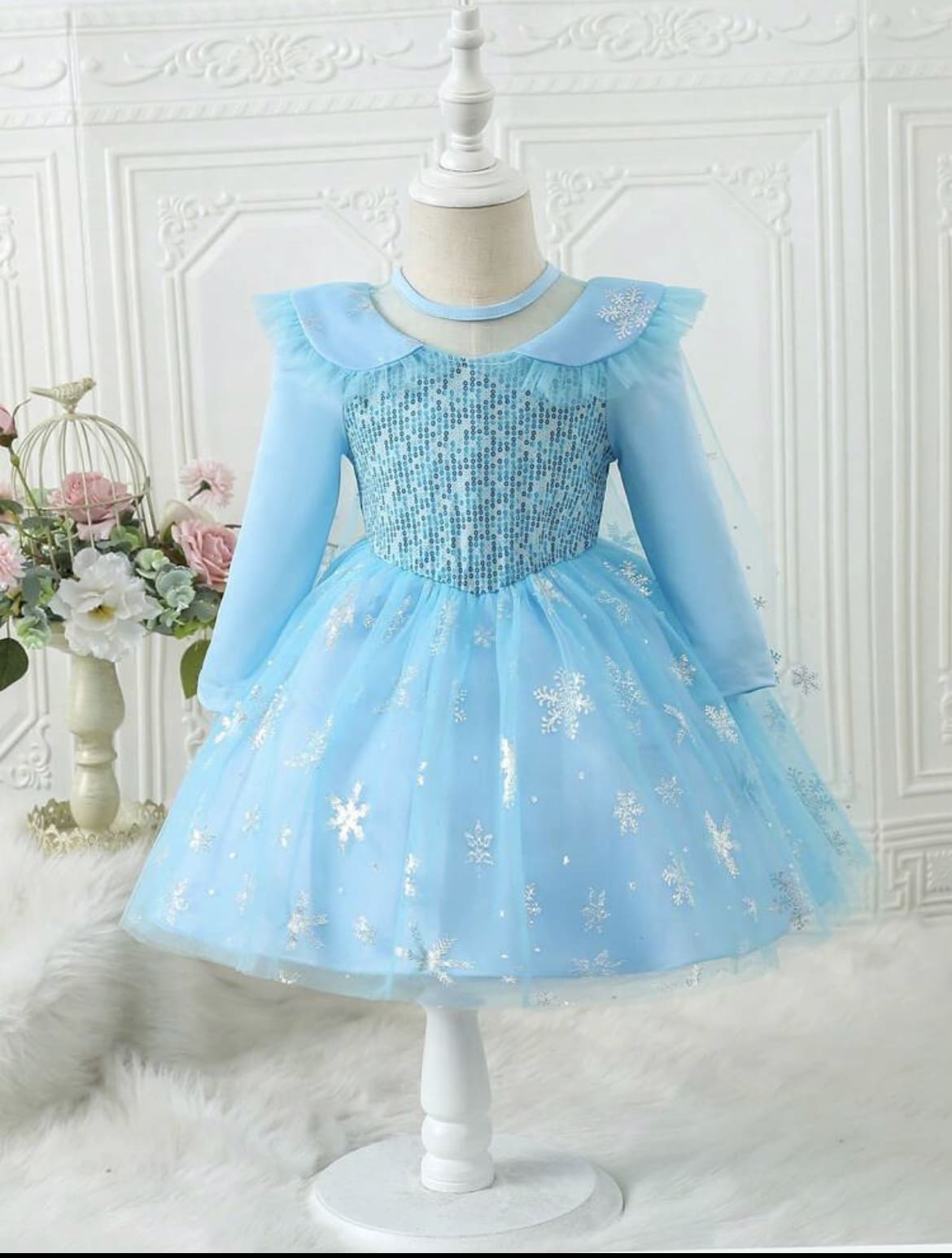 Baby Girl Snowflake Print Ruffle Trim Mesh Overlay Party Dress