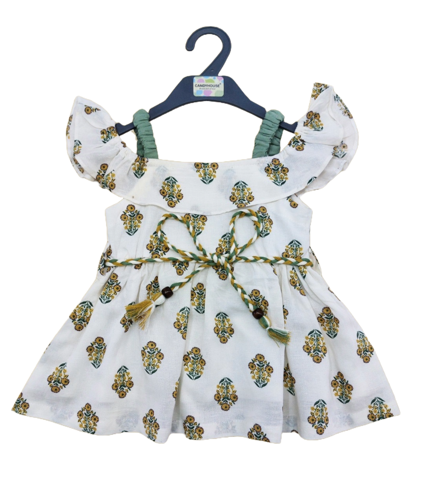 Baby girls floral printed flutter sleeves cotton fit flare dress