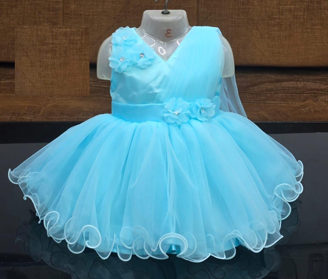 Baby girls party frock new fashion (blue)