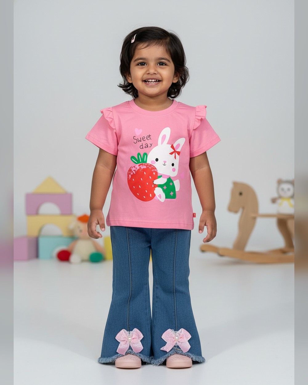 Baby girls Sweet Day denim t-shirt set / 2pcs (dark pink )