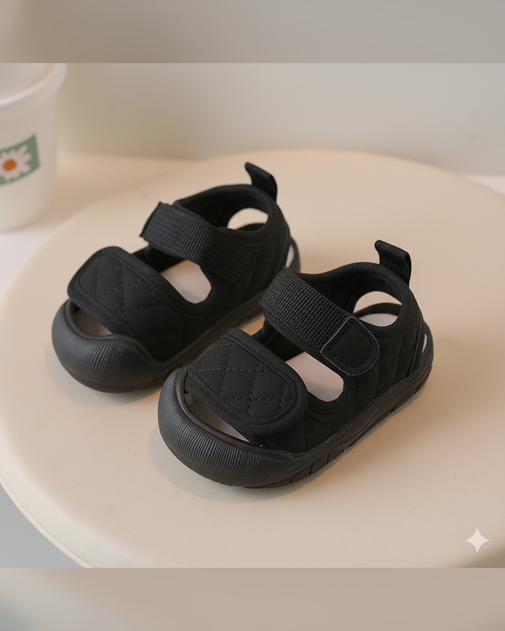 Black Quilted Baby Sandals with Velcro Strap