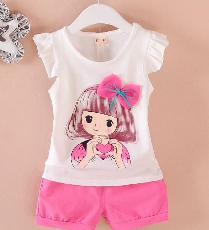 Bow hanging baby pink top and shorts set