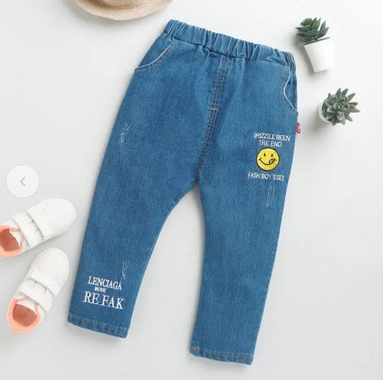 Boys Blue Text Print Elasticated Slim Fit Jeans