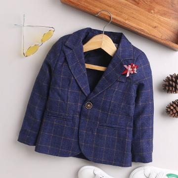 Boys Navy Checkered Full-Sleeve Blazer