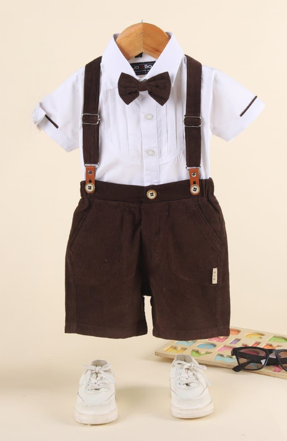 Brown Corduroy Suspender set / birthday outfit/ shirt and short with suspender and bow / 4pcs