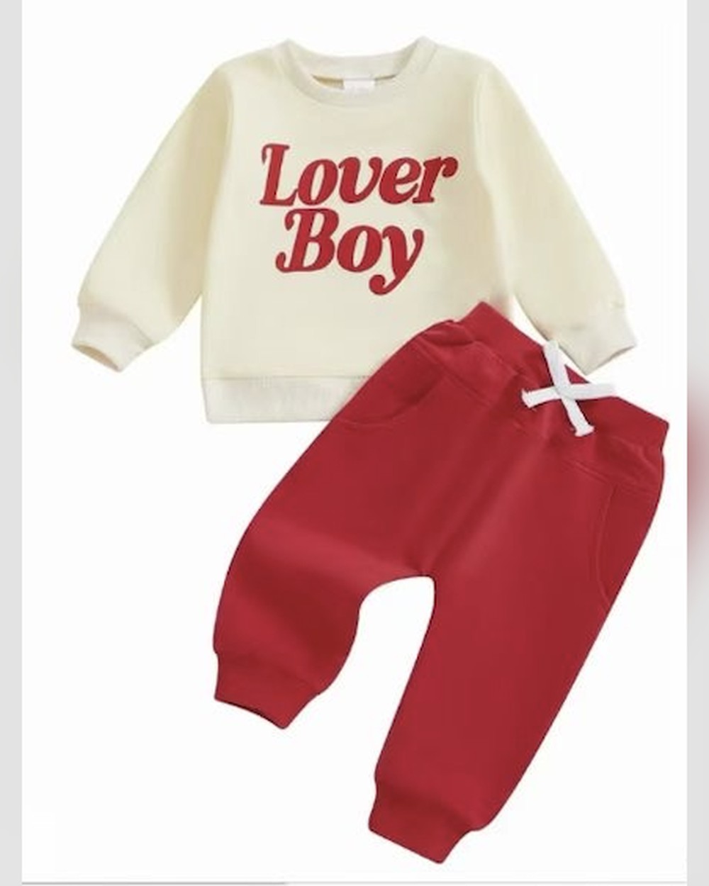 Cream & Maroon Lover Boy Baby Sweatshirt and Jogger Set