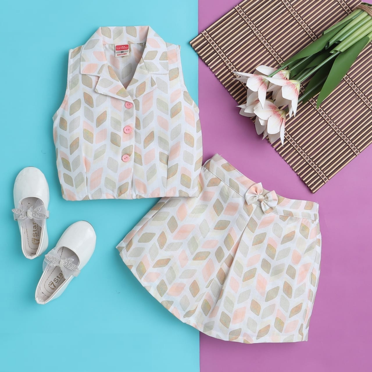 girls fashion casual sleeveless top and skirt /2pcs