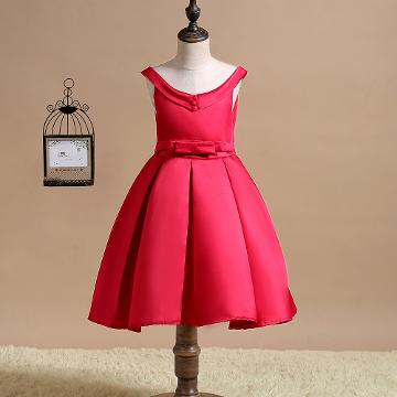 Girls Red Sleeveless Solid Party Dress