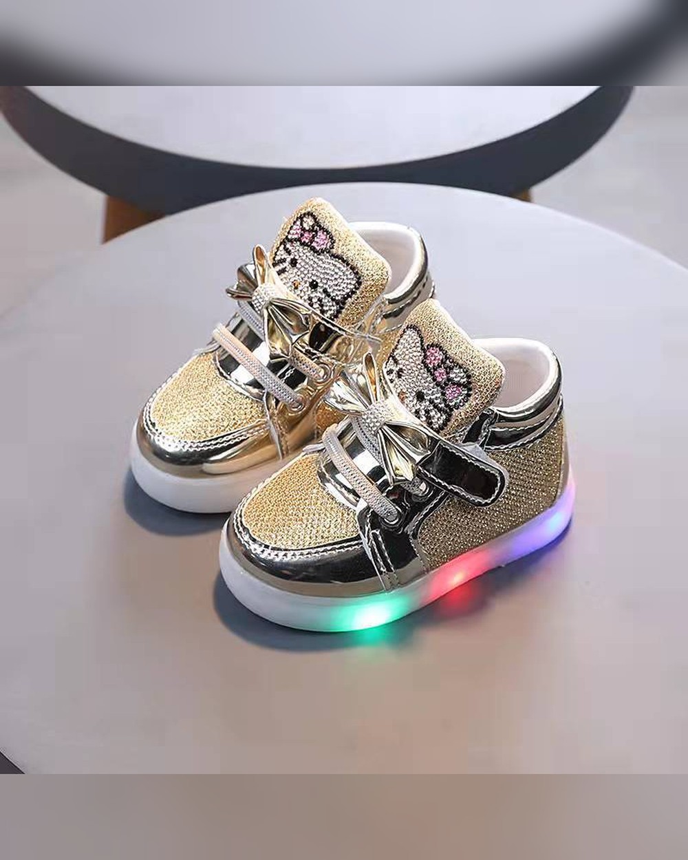 Gold Glitter LED Baby Sneakers with Light-Up Sole